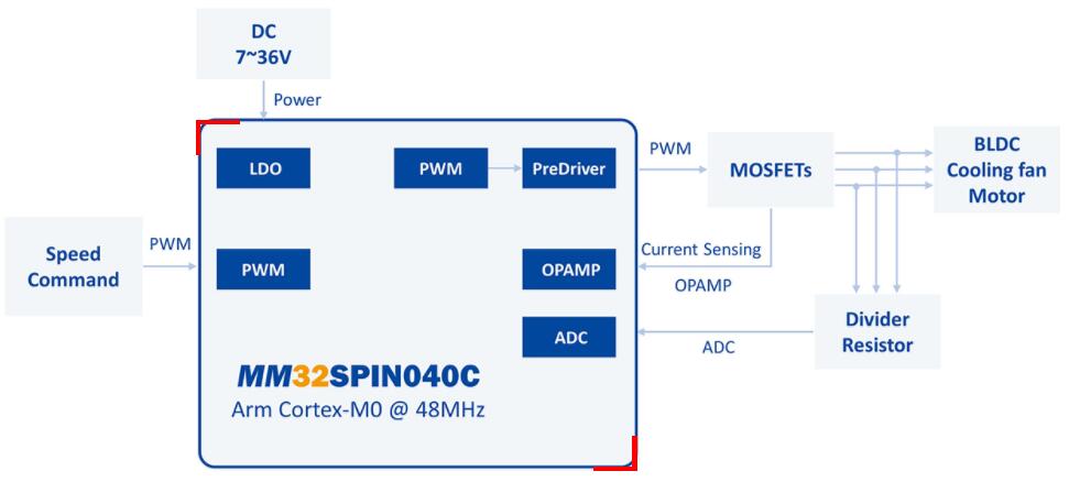 MM32SPIN040C,用于服務器風扇。