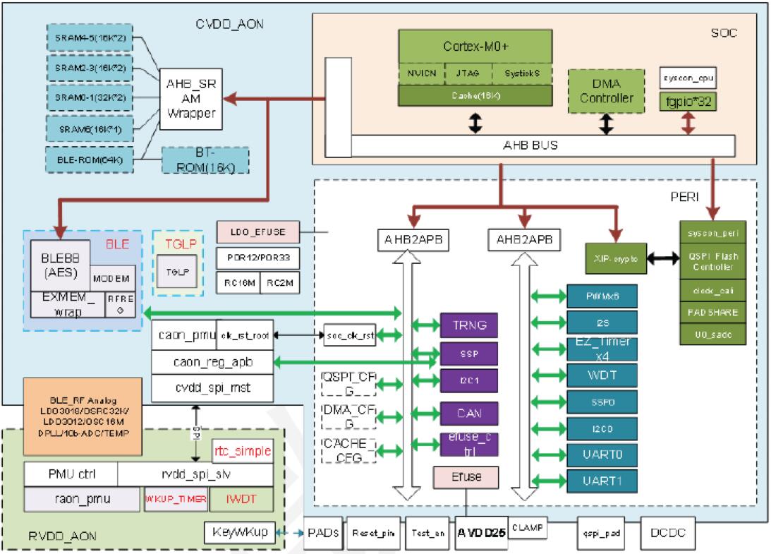 MS1636擁有多達27個GPIO可以更好的滿足IDH對應外設的管理要求。自主知識產權的藍牙通信模塊,也可以提供更靈活的無線收發需求,同時,不需要更多的外部器件。MS1636集成DC-DC電壓轉換器,并提供多種低功耗工作模式。滿足從高性能要求,到低功耗要求的各種物聯網和可穿戴產品設計要求。