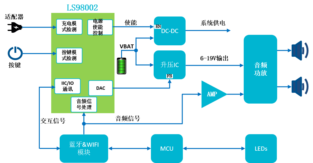 現(xiàn)場可重構(gòu)IC、通用可配置的模數(shù)混合芯片內(nèi)部集成豐富的模擬資源和數(shù)字資源,可輕松替代電路中的各種標(biāo)準(zhǔn)器件,并按照客戶要求組合成最優(yōu)小型ASIC,縮短開發(fā)周期,降低成本。下面介紹LS98002現(xiàn)場可重構(gòu)CPLD芯片應(yīng)用案例—藍(lán)牙音箱。