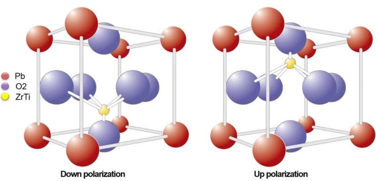 這些吸引人的特性是鋯鈦酸鉛(PZT)是其中一種材料的鐵電性能的結(jié)果。PZT具有鈣鈦礦晶體結(jié)構(gòu),中心有一個陽離子(見圖1)。該陽離子可以處于兩個位置之一,并且可以通過施加電場來切換位置。每個轉(zhuǎn)換都會產(chǎn)生“開關(guān)電荷”(Q s),可以將其讀取以表示邏輯1或0。