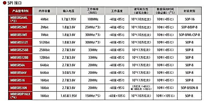 串行接口存儲(chǔ)器的產(chǎn)品陣容有16Kbit至4Mbit的SPI接口產(chǎn)品,以及4Kbit至1Mbit的I2C接口產(chǎn)品。電源電壓除主要的3.3V工作產(chǎn)品外,正在擴(kuò)充1.8V工作產(chǎn)品。封裝除能夠與EEPROM及串行閃存兼容的SOP外,還提供可穿戴設(shè)備用SON(Small Outline Non-leadedpackage)及WL-CSP(Wafer Level Chip Size Package)等超小型封裝產(chǎn)品。