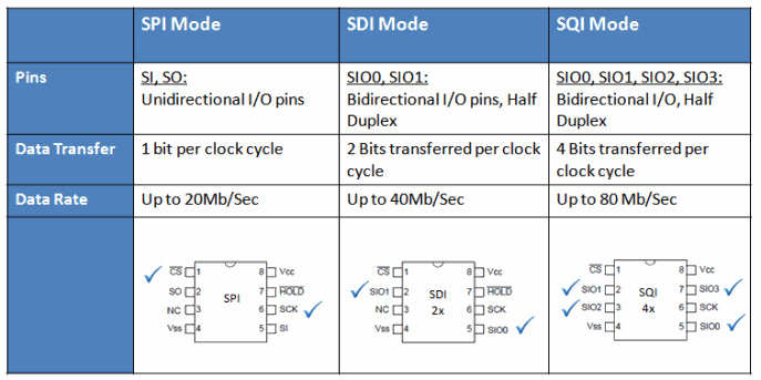 串行SRAM總線模式——SPI、SDI和SQI: